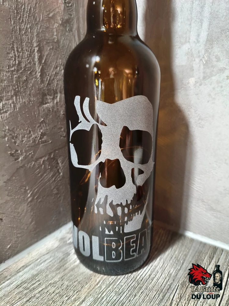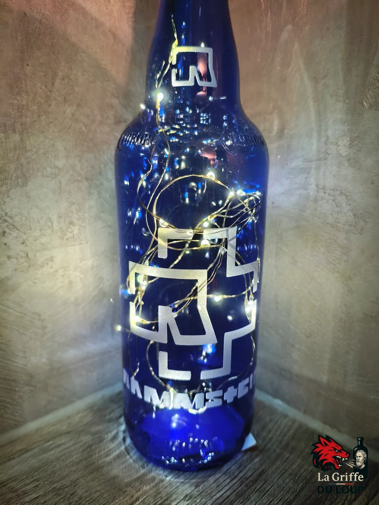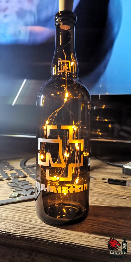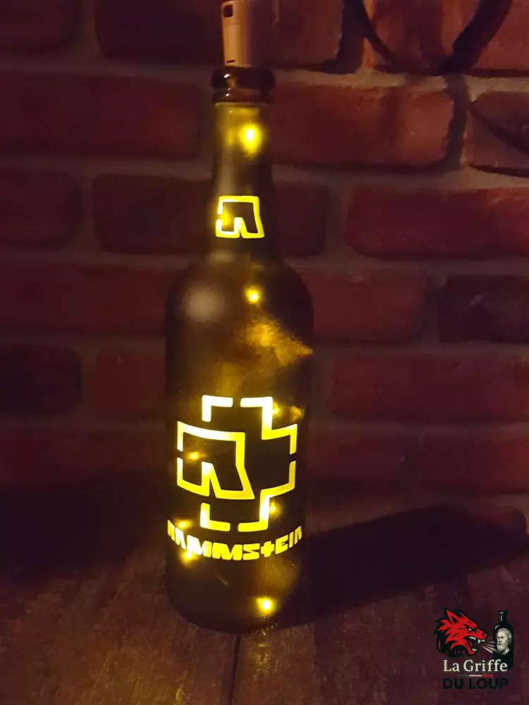 Superbe bouteille décorative gravée Rammstein, personnalisée avec différentes  finitions.