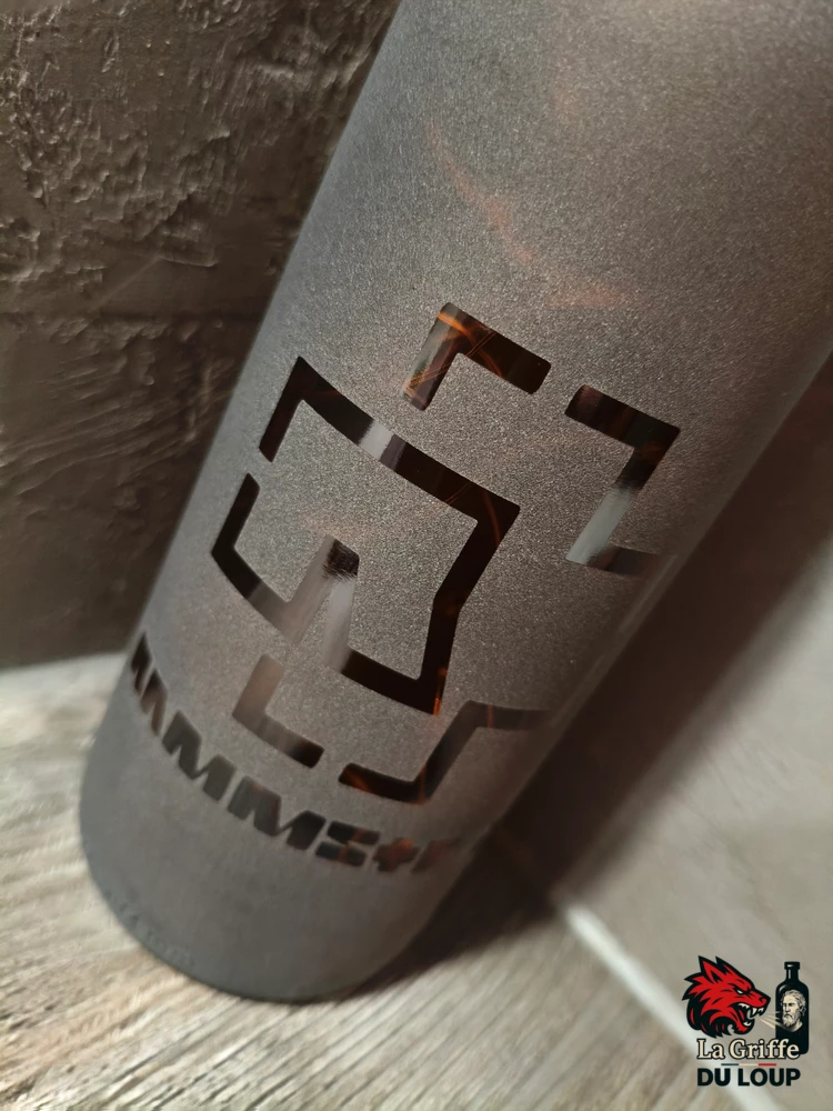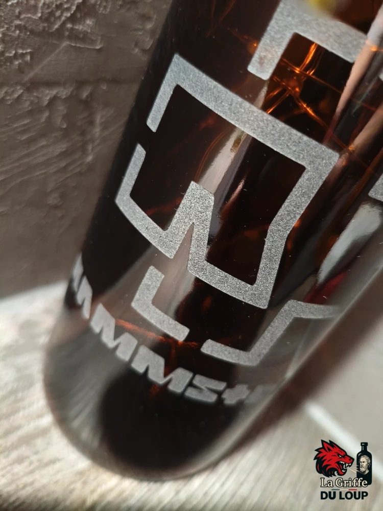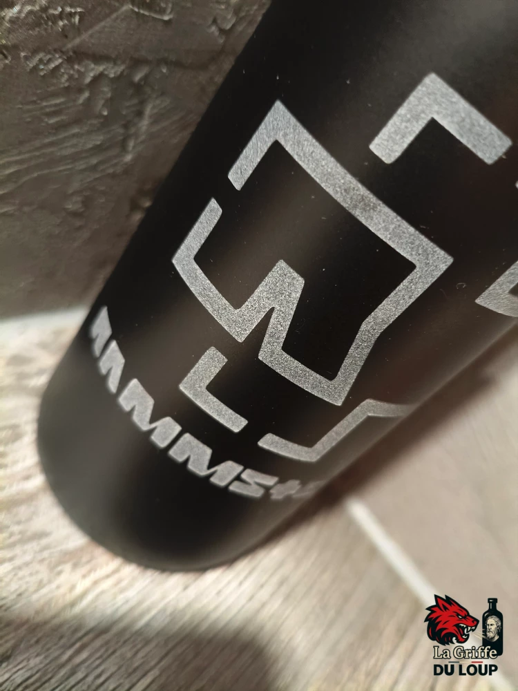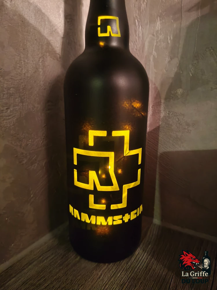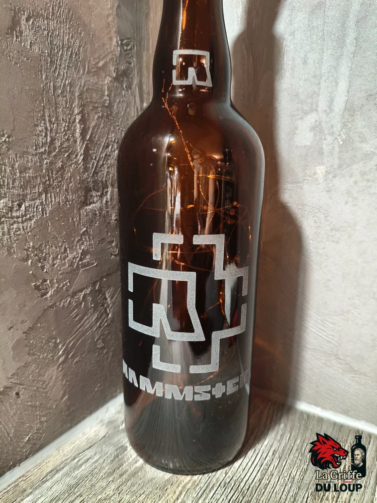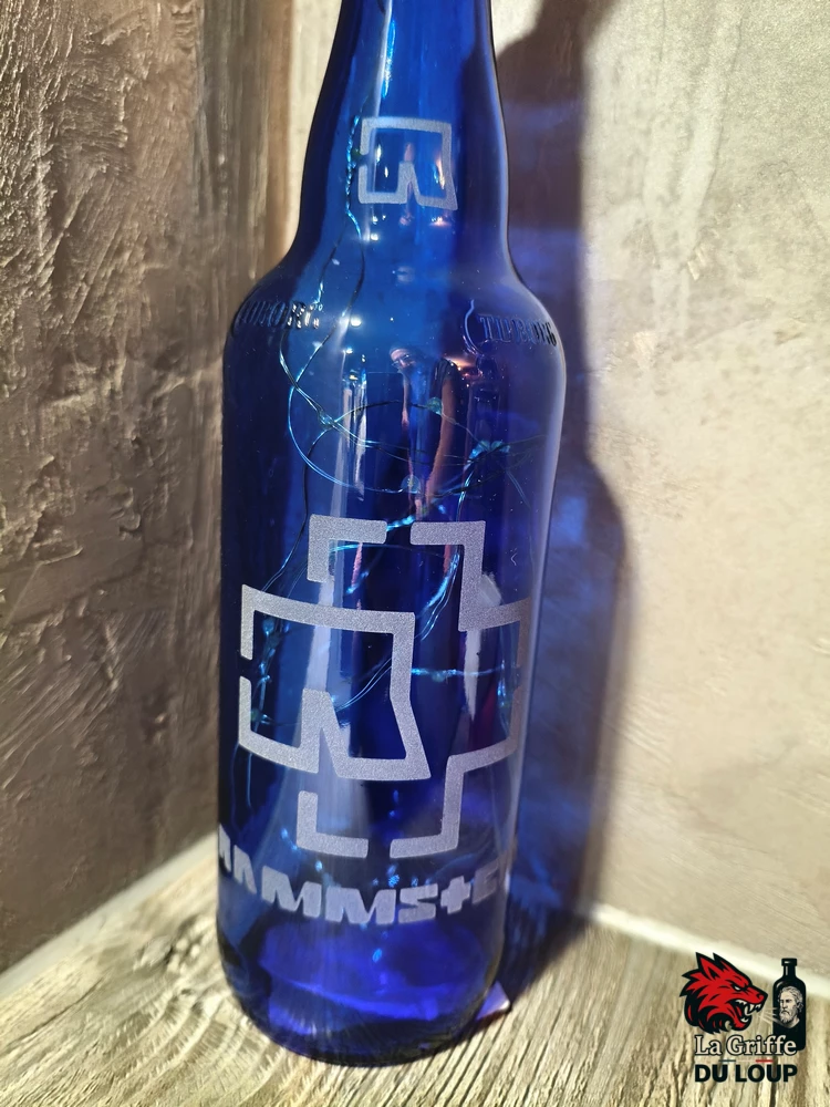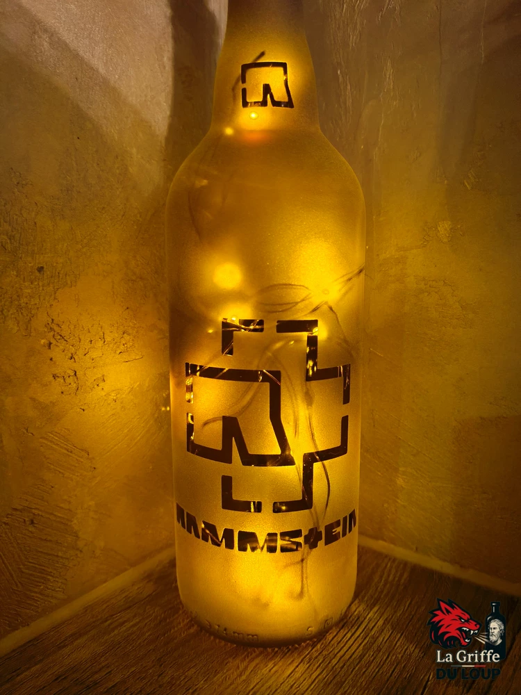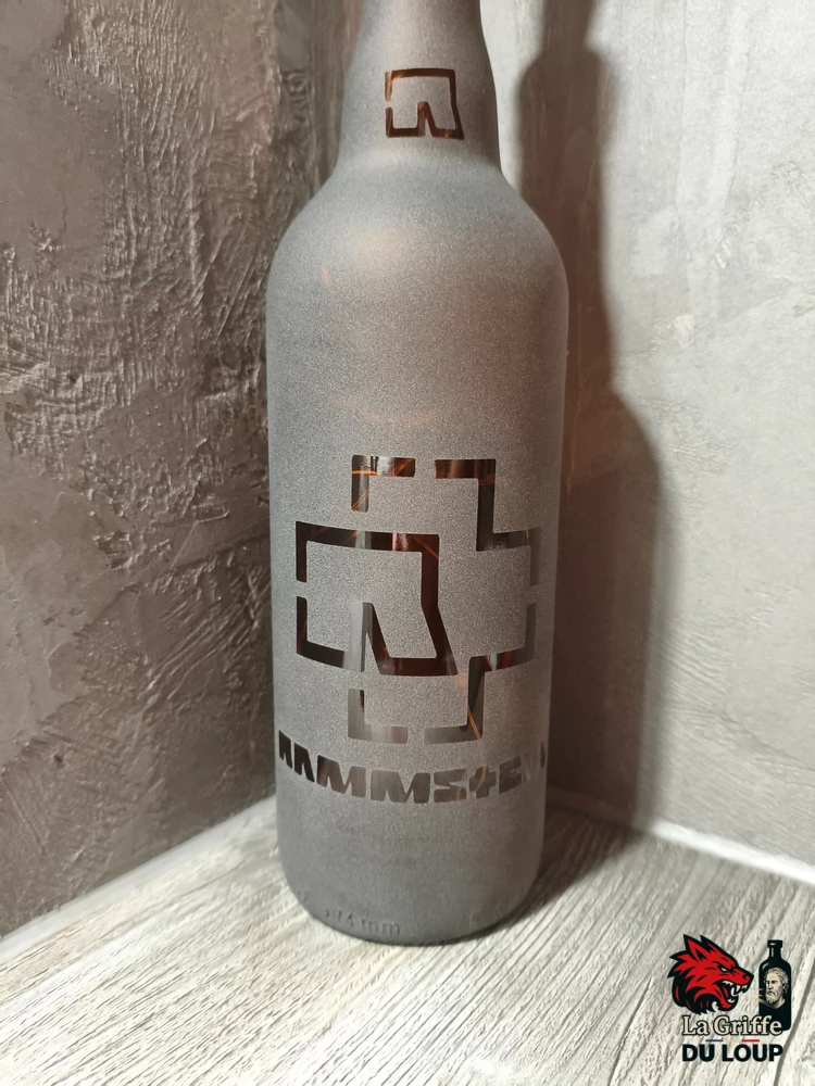 Superbe bouteille décorative gravée Rammstein, personnalisée avec différentes finitions.