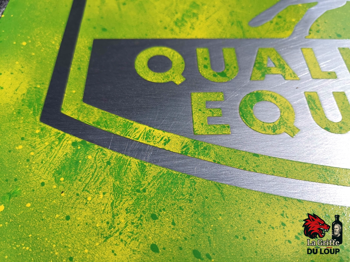 Magnifique plaque avec le motif de 1960 brossé et sa peinture à effet marbré, le tout sous une épaisse couche de vernis qui saura la faire durer très longtemps dans le temps!