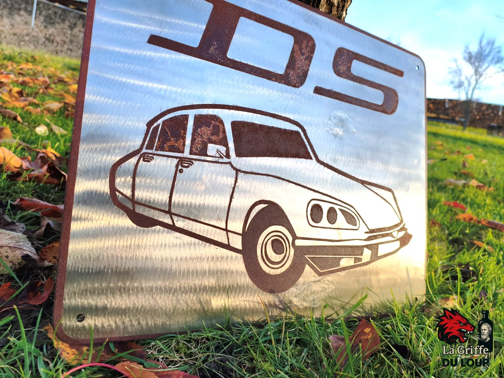 Plaque en acier rouillé avec le motif du légendaire groupe Américain en finition brossé, le tout recouvert d’une épaisse couche de vernis stabilisant la rouille!
