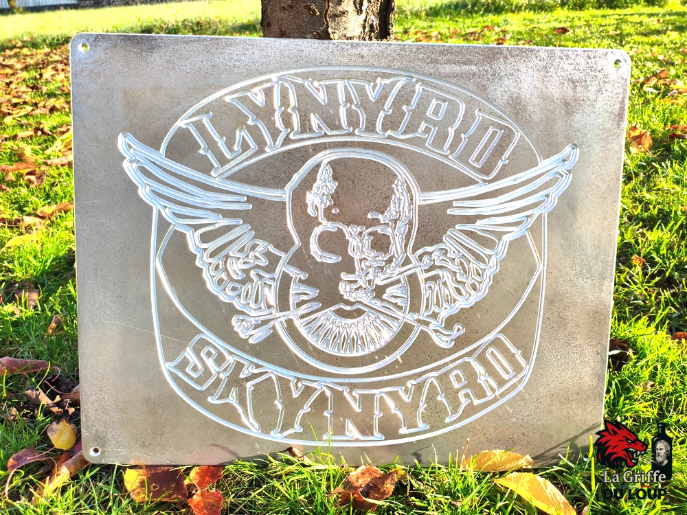 Magnifique Plaque Lynyrd Skynyrd en aluminium de 3mm d’épaisseur, sa finition oxydée rend bien hommage à ce groupe légendaire! Effet garanti!
