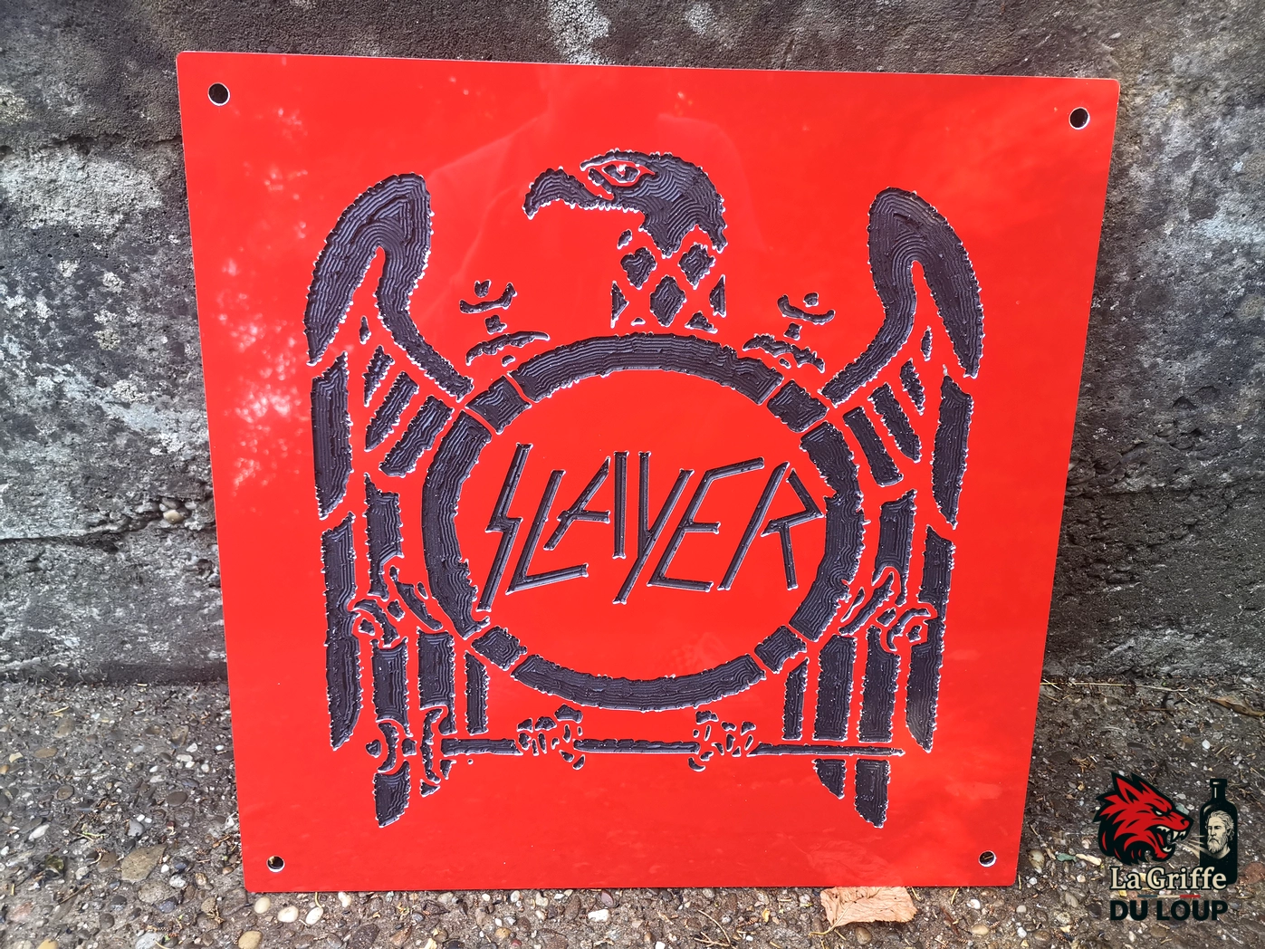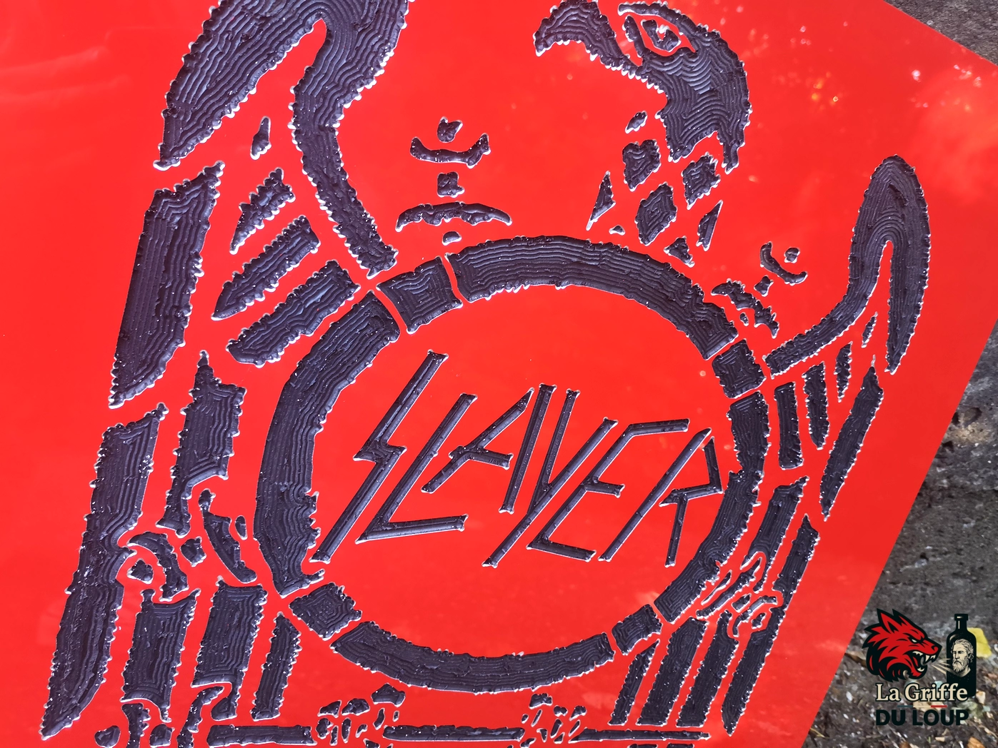 Plaque décorative en aludibond rouge brillant à l’effigie du célèbre groupe de trash métal américain!