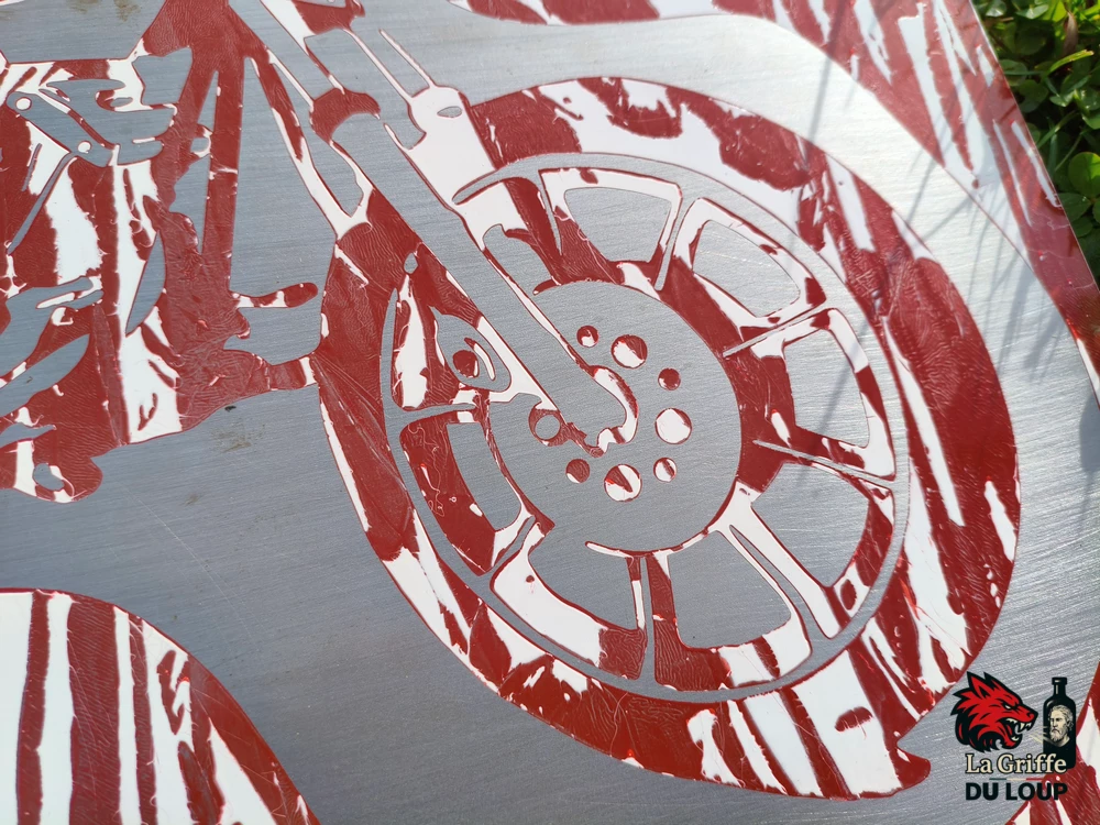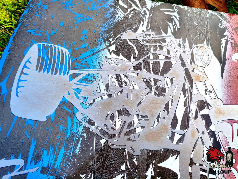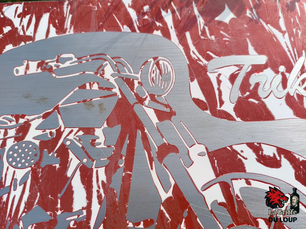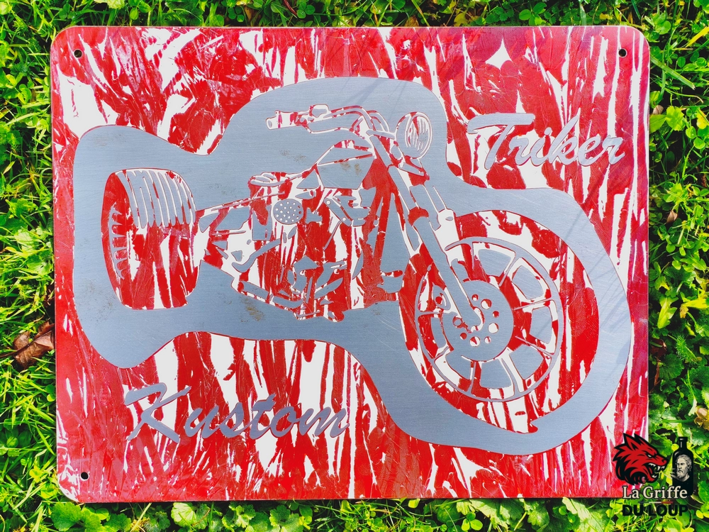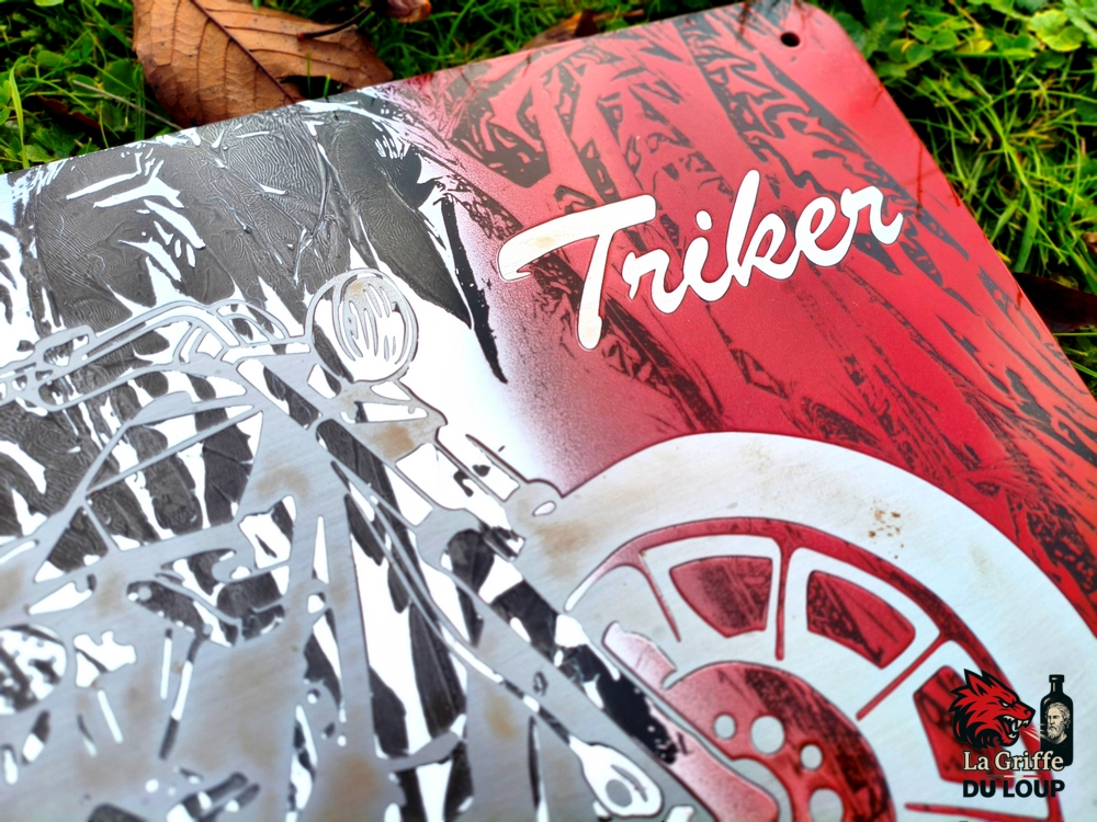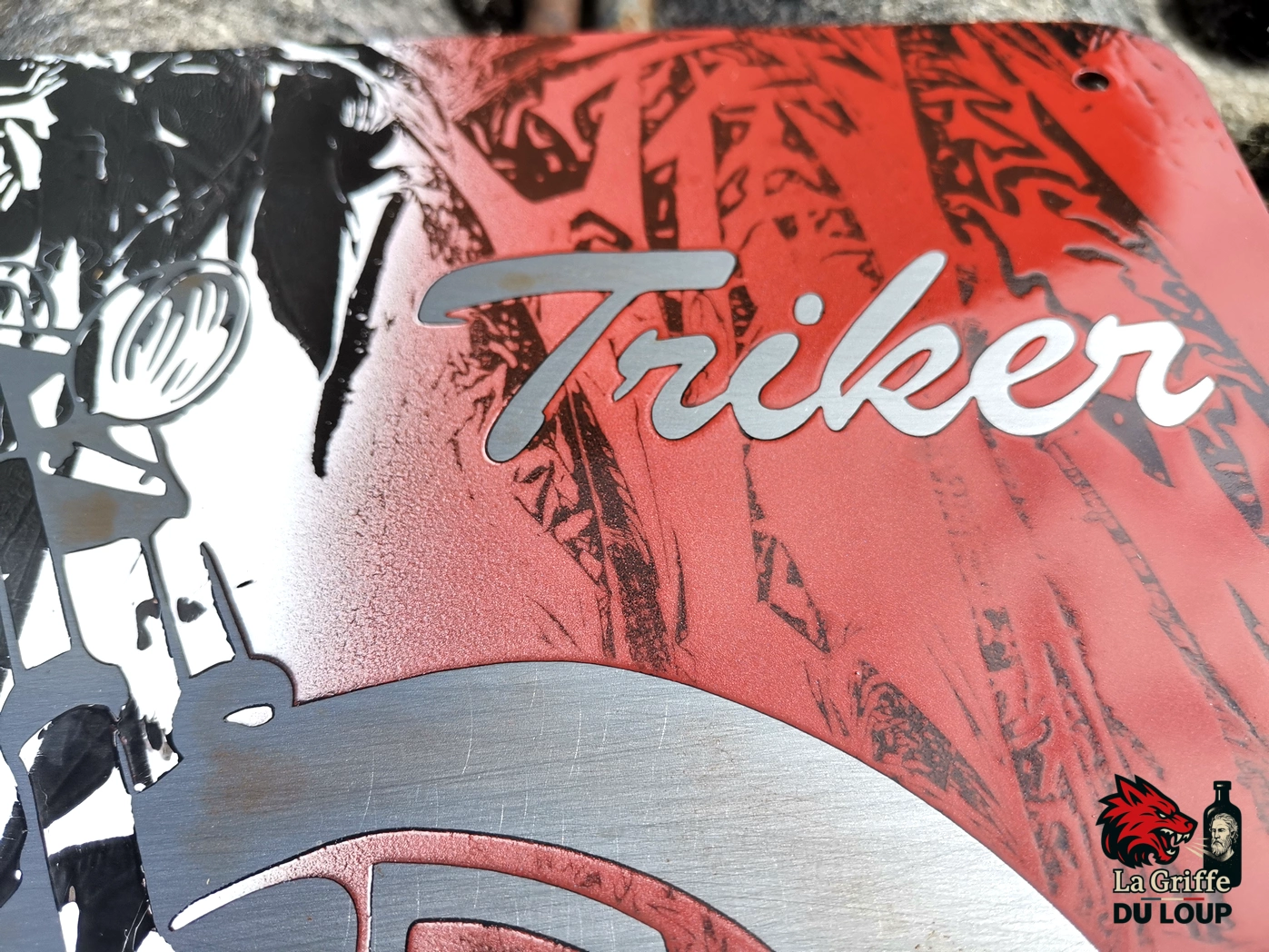 Magnifique plaque avec en motif un trike et sa peinture à effet marbré, le tout sous une épaisse couche de vernis qui saura la faire durer très longtemps dans le temps!