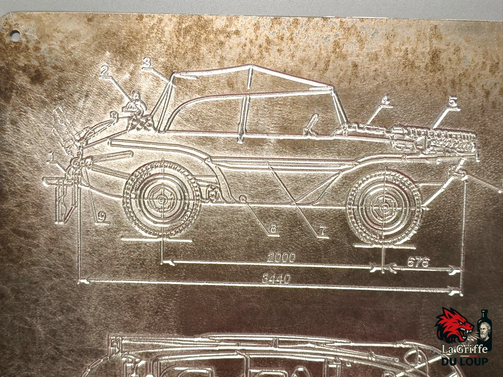 Plaque VW Schwimmwagen ALU oxydé fraisé 4 vues L