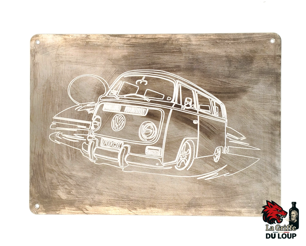 Magnifique plaque représentant le Popo Volkswagen en ALU peint en rouge et noir vintage.